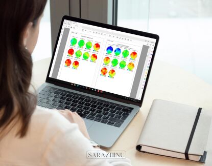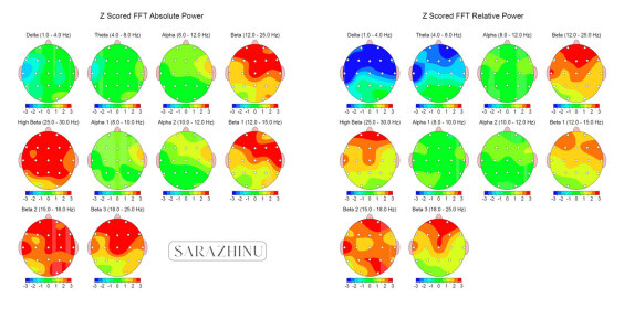 سپس، دادهها با مقادیر مرجعی از پایگاه داده نرمال، مقایسه شده و سپس به نقشههای مغزی تبدیل میشوند که در آن EEG پردازش شده با رنگ نشان داده میشود. اطلاعات جمعآوری شده میتوانند به عنوان یک ابزار برای ارزیابی عملکرد مغز فرد و همچنین پیگیری تغییرات مغزی ناشی از مصرف دارو یا تحریک الکتریکی مغز (tDCS) استفاده شوند.